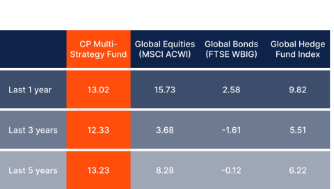 CP Global Asset Management Private Limited operates as a Capital Markets Services Licensee (CMS101503) – Licensed Fund Management Company (LFMC/AI) to conduct business in fund management under the Securities and Futures Act. The information shown in this website does not constitute an offer or solicitation to anyone in any jurisdiction in which such offer is not authorised or to any person to whom it is unlawful to make such offer or solicitation. Past performance of the CP Multi-Strategy Fund is not necessarily indicative to its future performance.